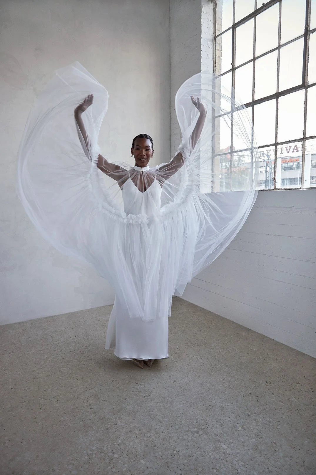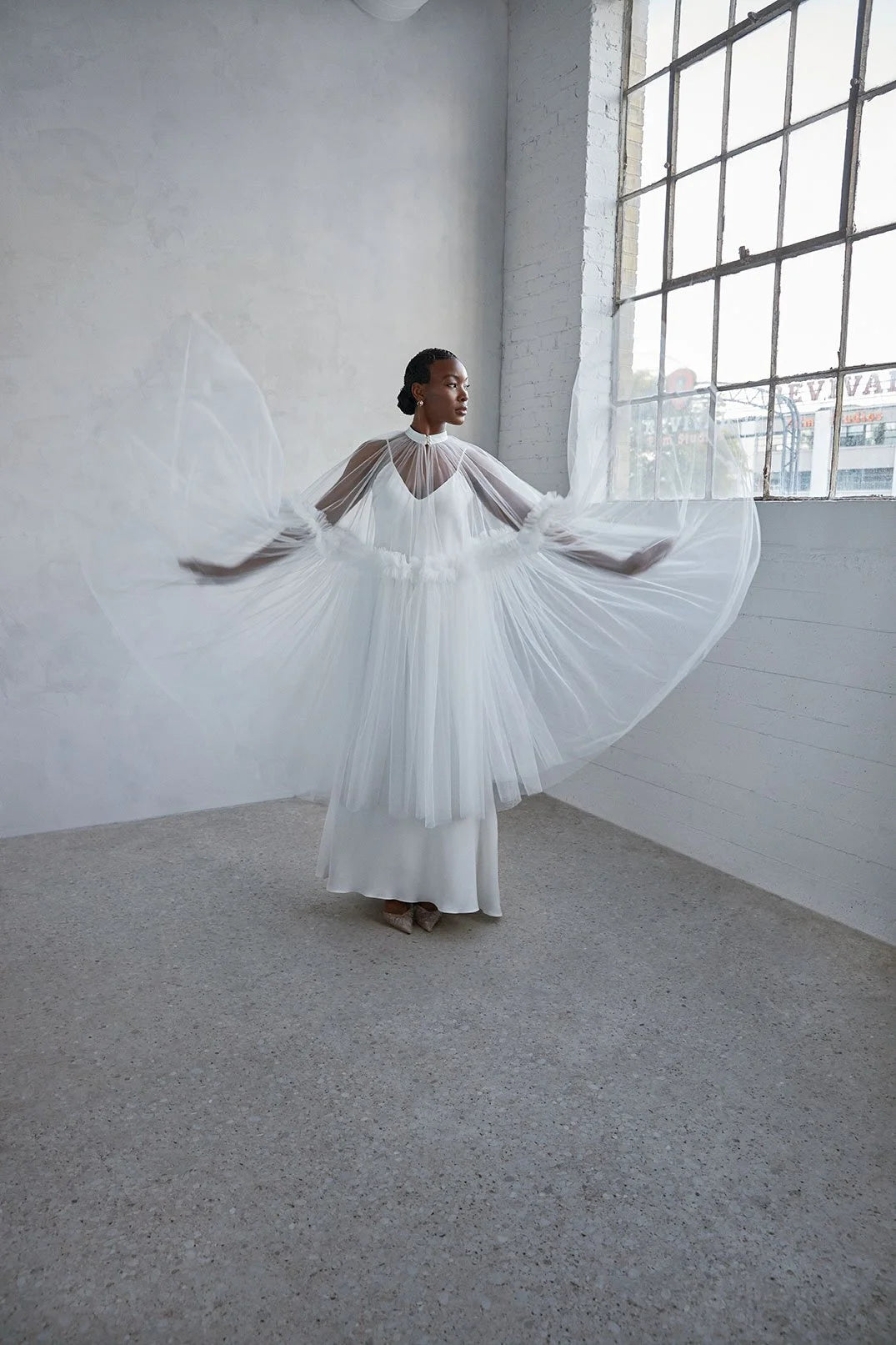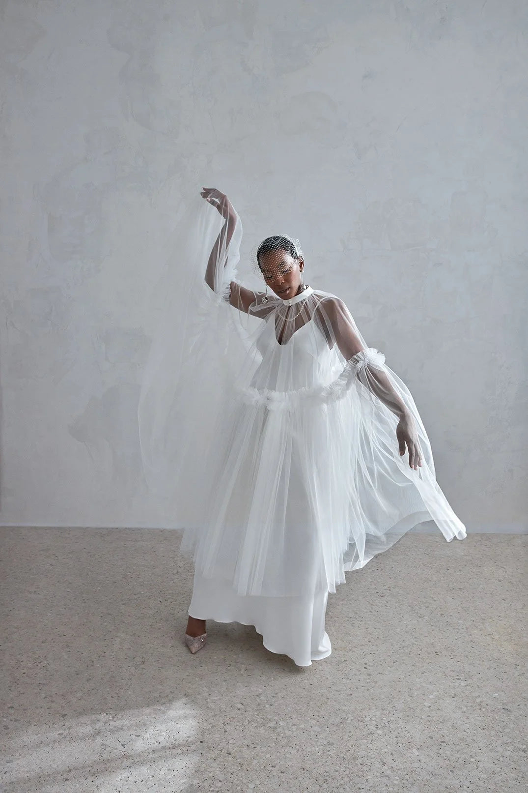 • Tulle circle detachable cape