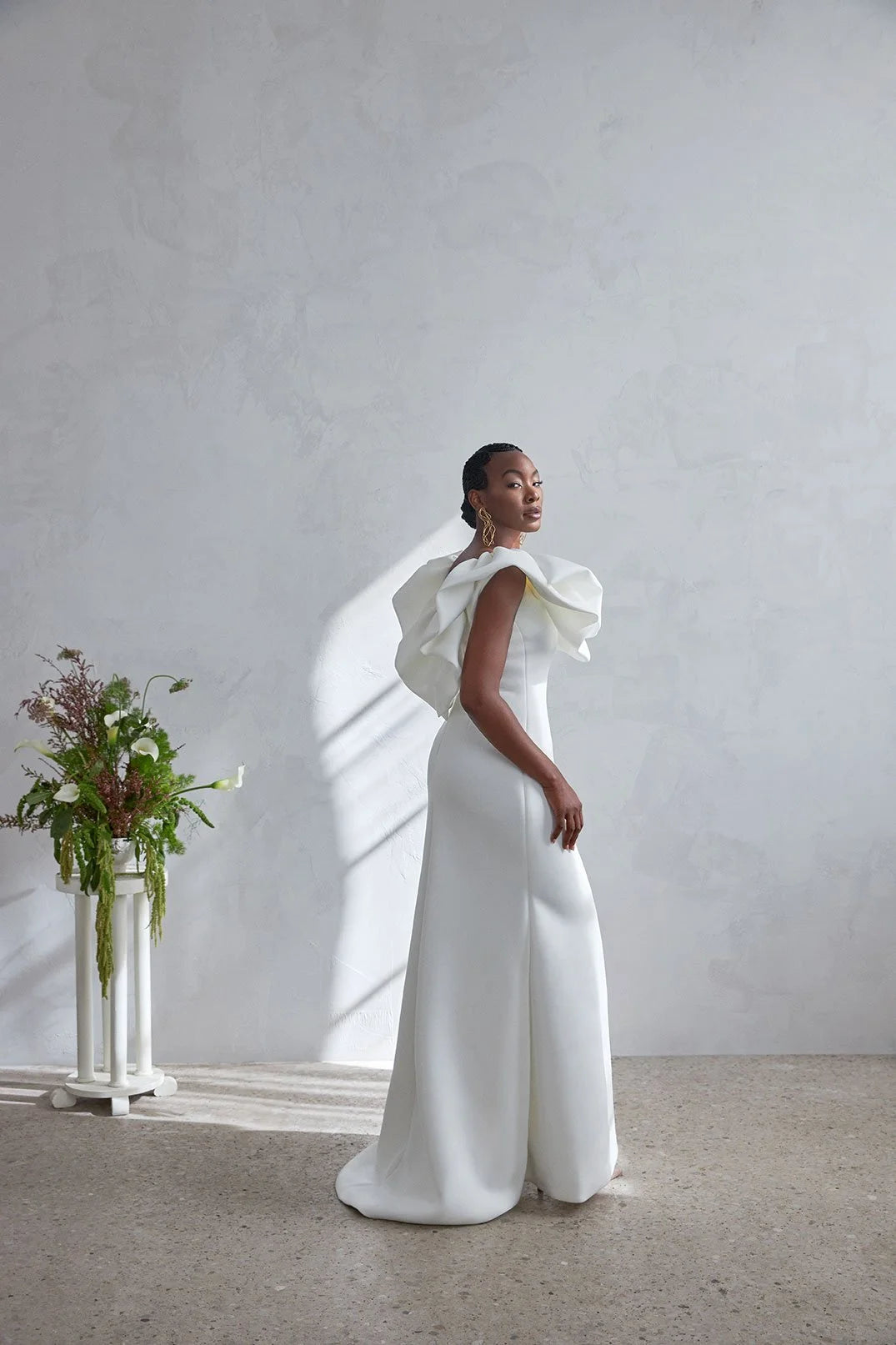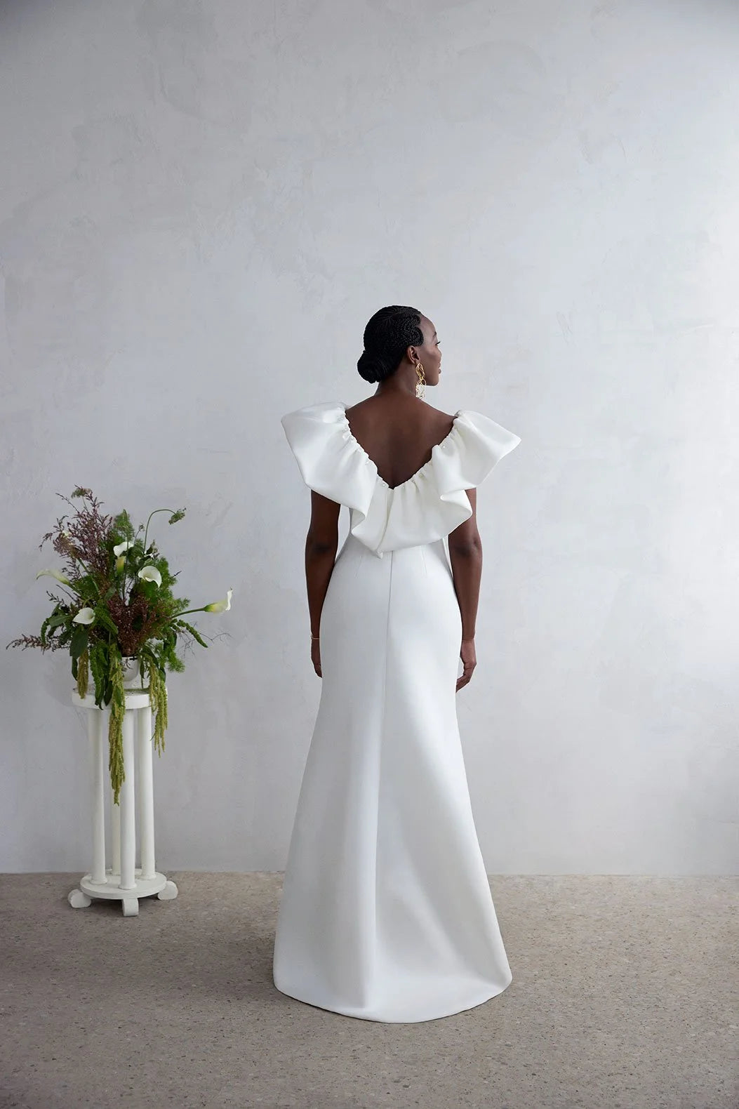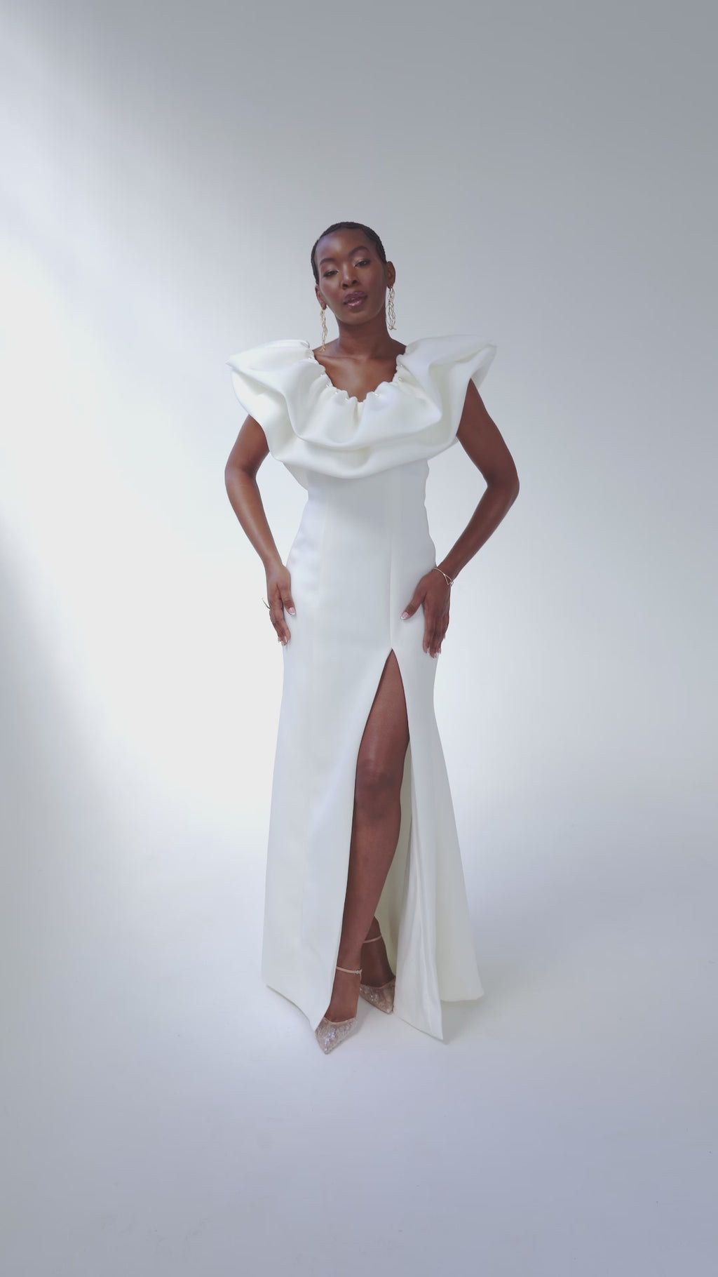 A sophisticated scuba wedding gown that blends structure and softness for a refined, elegant bridal look. Lined with lightweight jersey for added comfort.